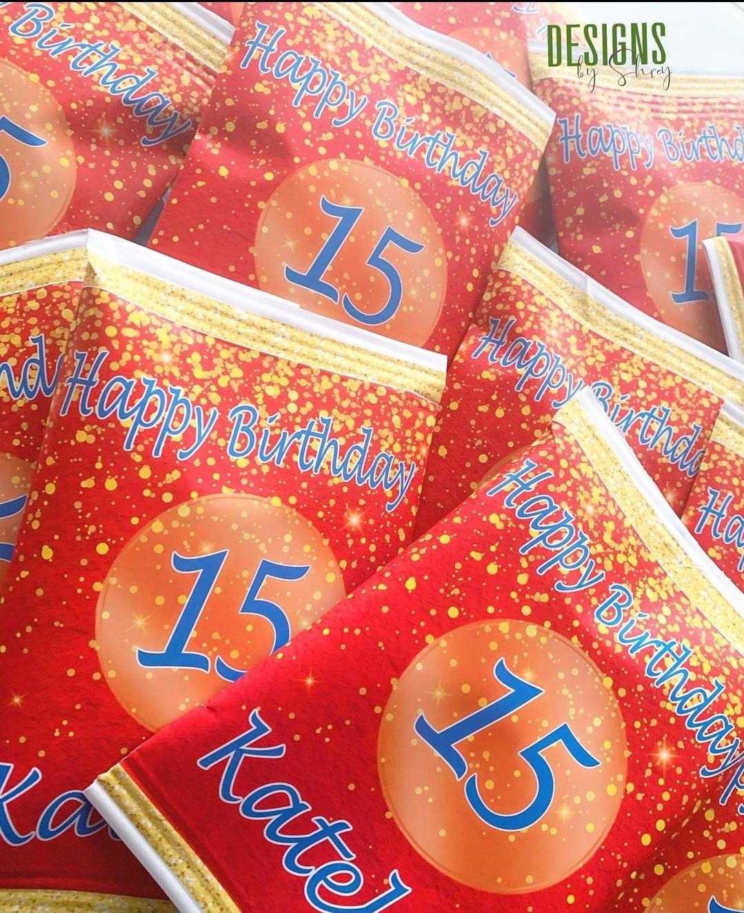 These bags can be customized with your favorite treats (chips, mini pretzels or popcorn). Please be sure to include the following: Name, Colors/Theme, Event Date, Chip Logo if you want one.